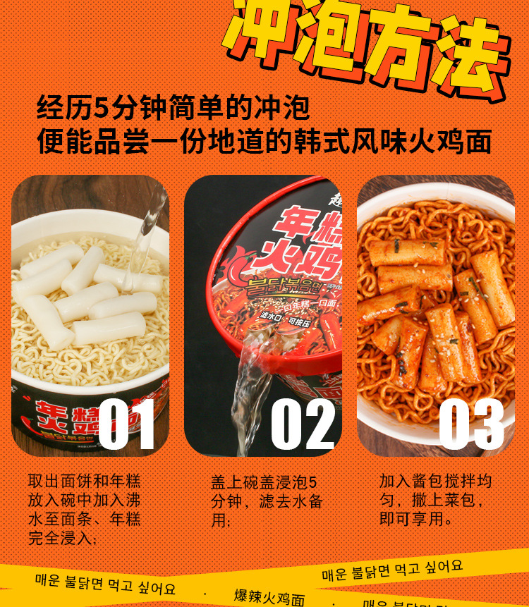Tteokbokki Turkey Noodles Korean Spicy Strips Mixed Noodles Bucket Wholesale Instant No-Cook Instant Noodles Sweet and Spicy